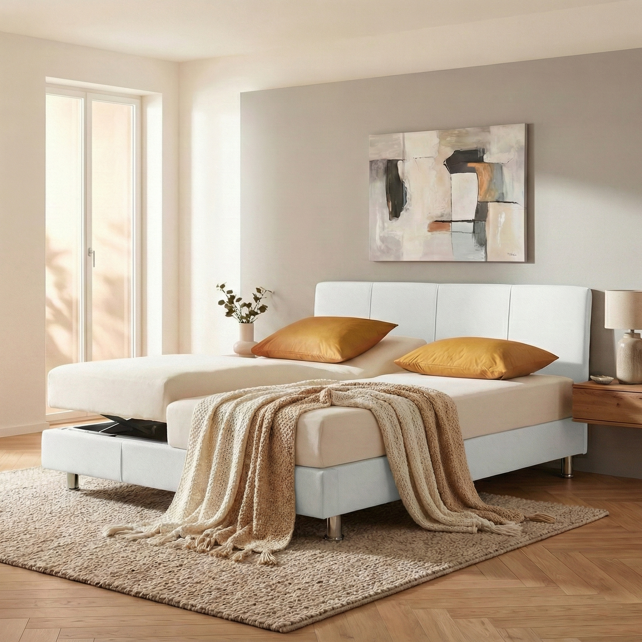- ארגז מצעים מרופד, גדול ונוח לפתיחה עם בוכנות כפולות