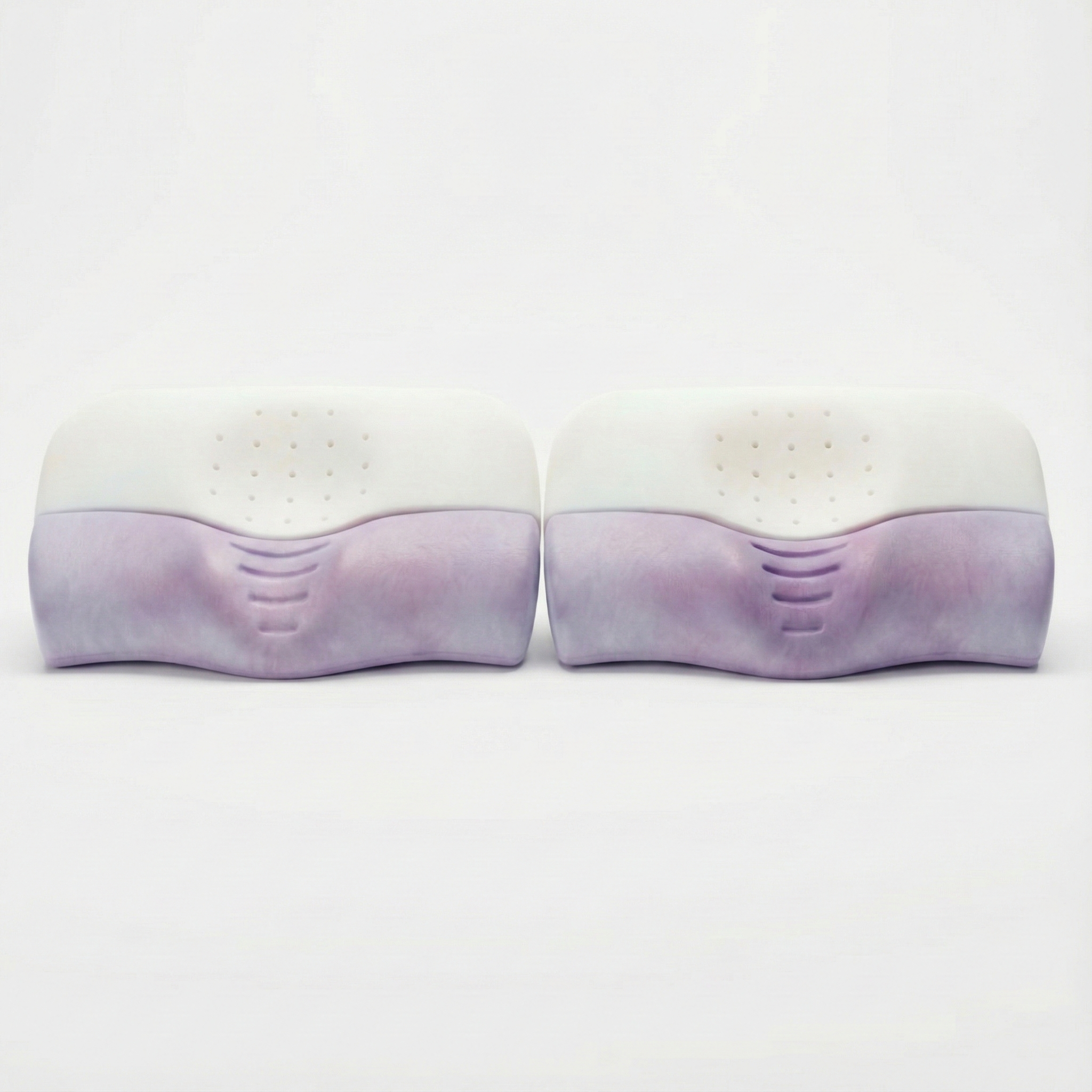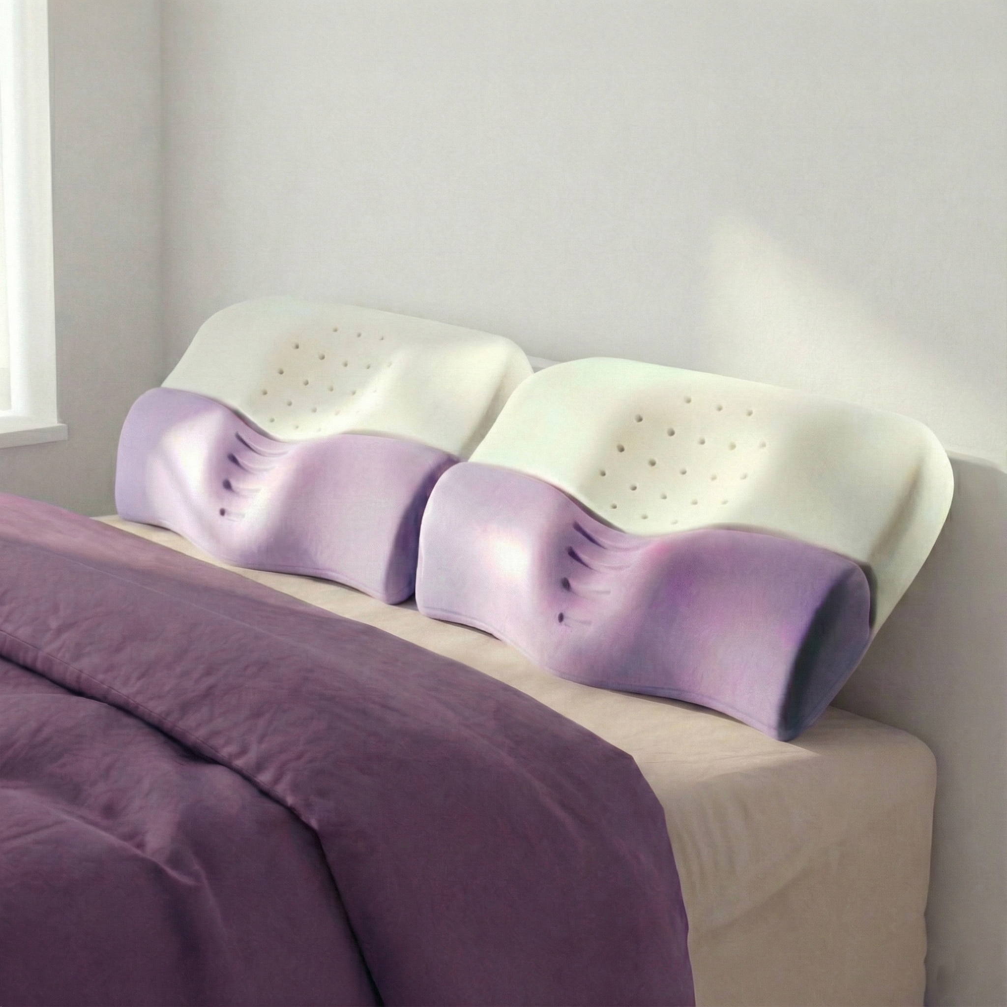 ליבת הכרית עשויהViscoJel פולימר ו- visco elastic gel מחולקת לשתי רמות תמיכה: החלק הלבן ויסקו ג’ל בדחיסות נמוכה לתמיכה רכה בקודקוד, והחלק הסגול ויסקו ג’ל בדחיסות גבוהה, קשיח יותר, לתמיכה בשכמות ובצוואר. הכרית אוורירית עם תעלות אוורור וריפוד קטיפתי ונעים, המעניקים חוויית שינה מפנקת ונינוחה לאורך כל הלילה.