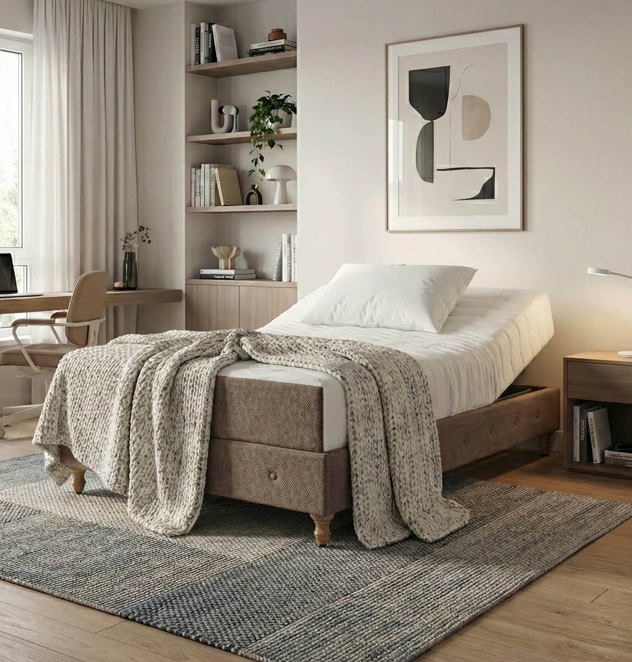 מיטה זוגית גדולה ומפנקת, המשלבת עיצוב אלגנטי עם נוחות מתקדמת.