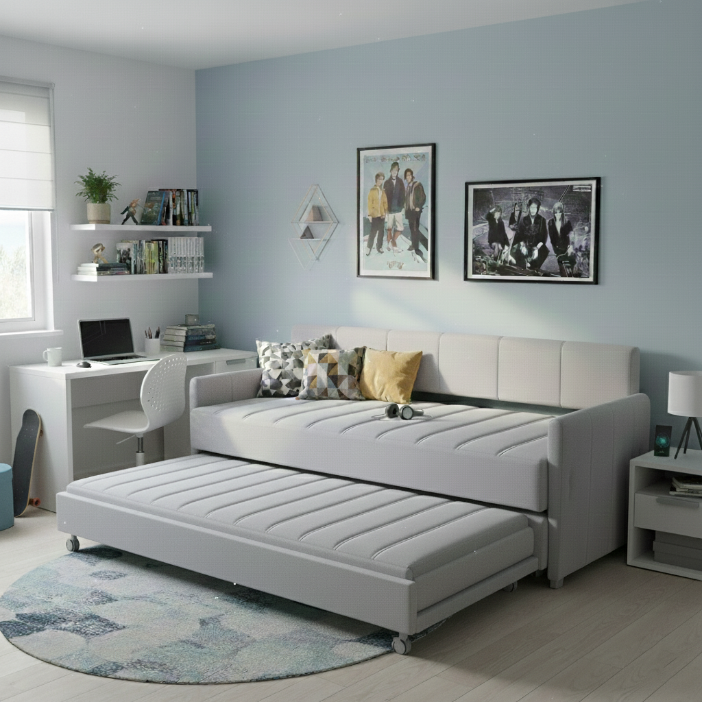 ספת נוער דגם Delux מסדרת  Classic Silverמעוצבת עם תפירה אנכית ייחודית וידיות גבוהות מרופדות, למראה אלגנטי ונוכחות מרשימה בחדר.