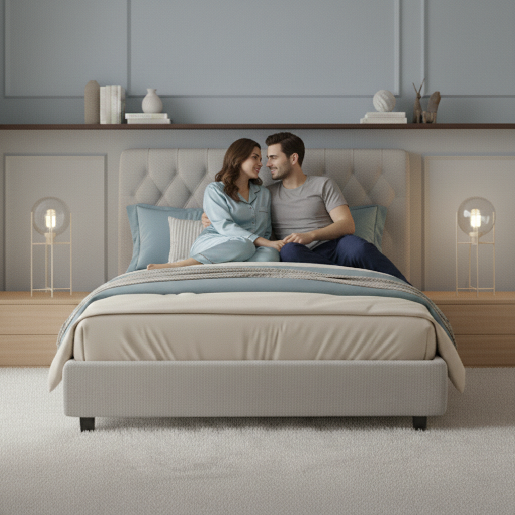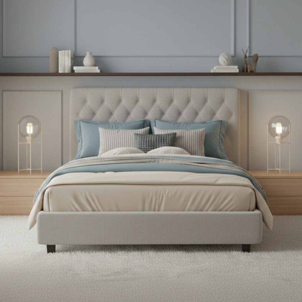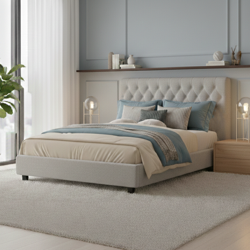 ראש המיטה מעוצב בטאפטינג מוקפד, המעניק תמיכה ונוחות מושלמת בזמן קריאה או מנוחה, לצד מראה אלגנטי ומפנק.