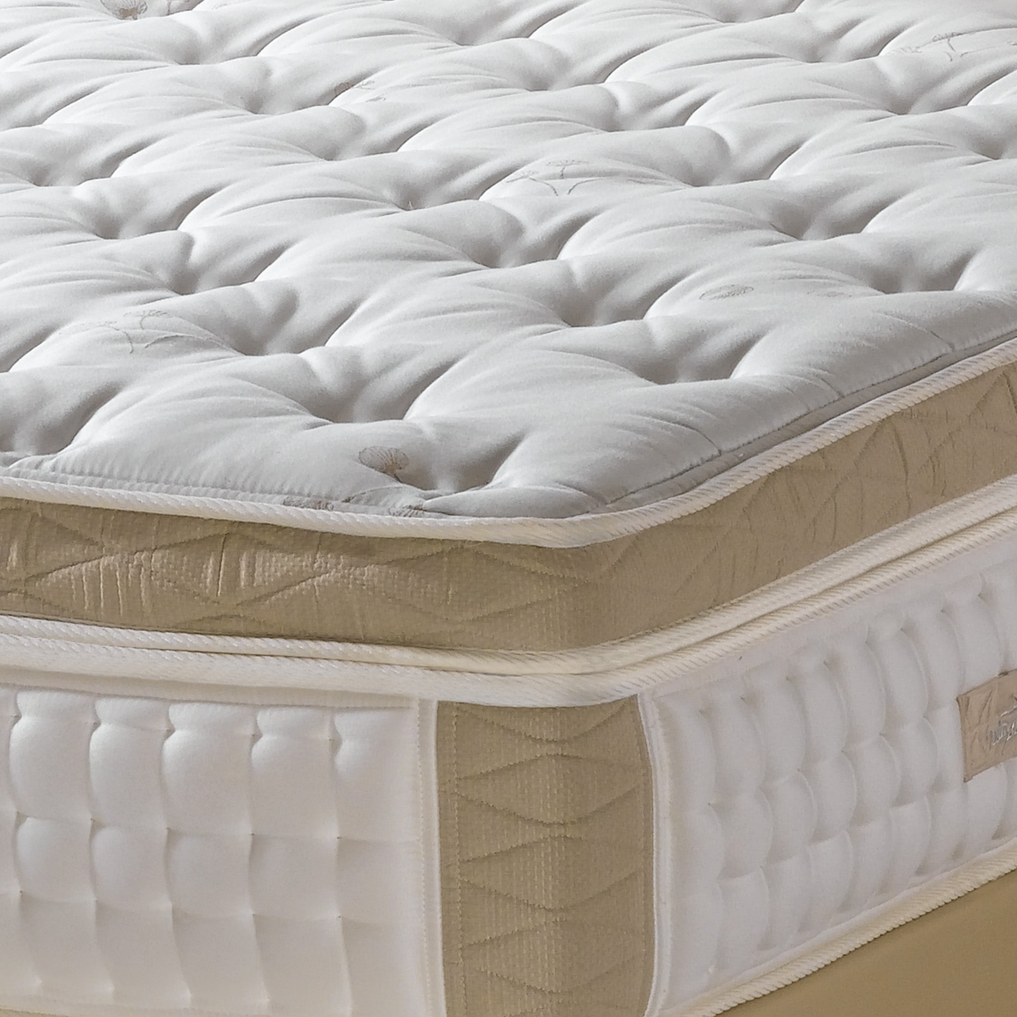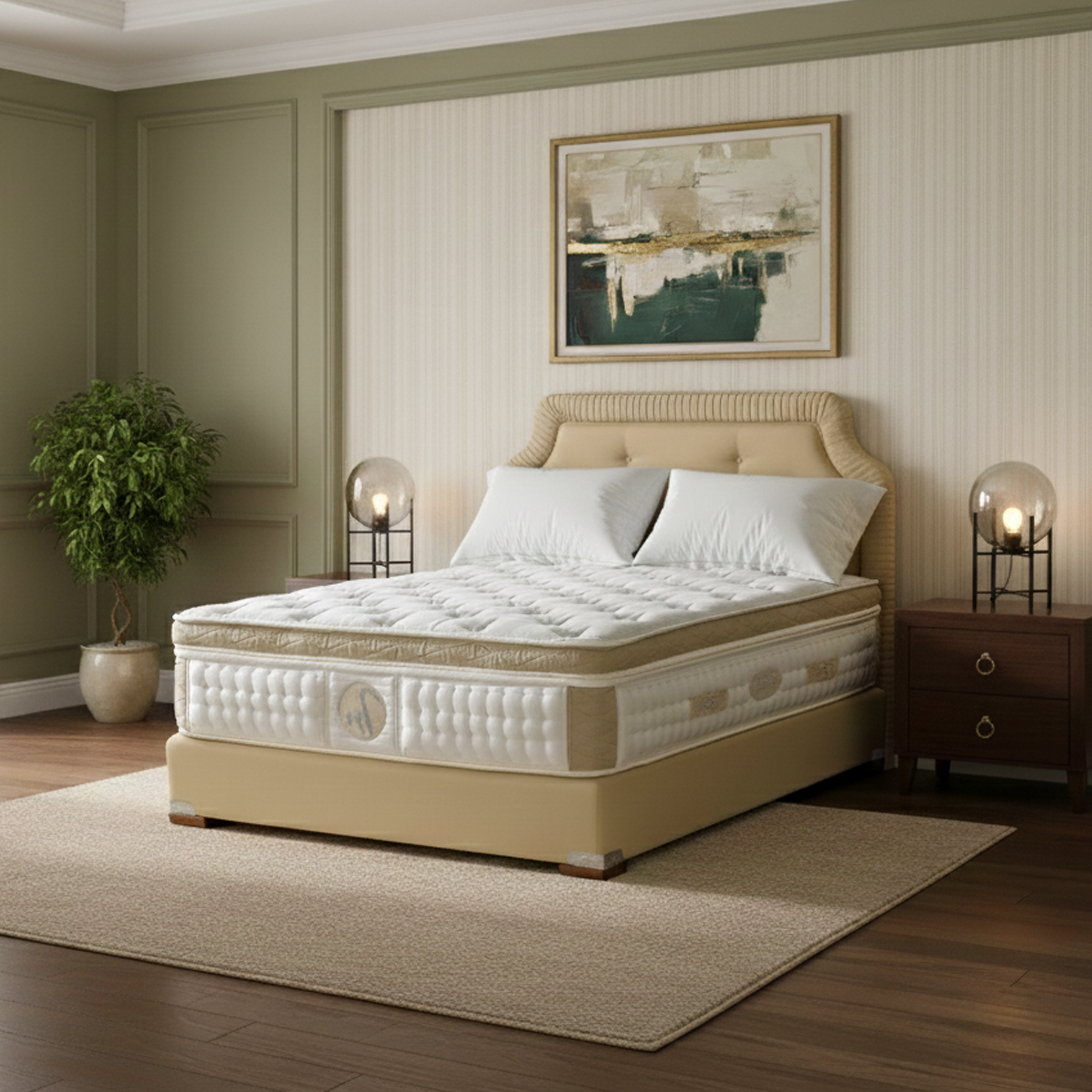 • שכבות נוחות וריפוד LATEX 100% Grand Pillow Top עם אקרילן טרמובונד משי פראי ו-Outlast רכות, אווריריות וויסות טמפרטורה אקטיבי.