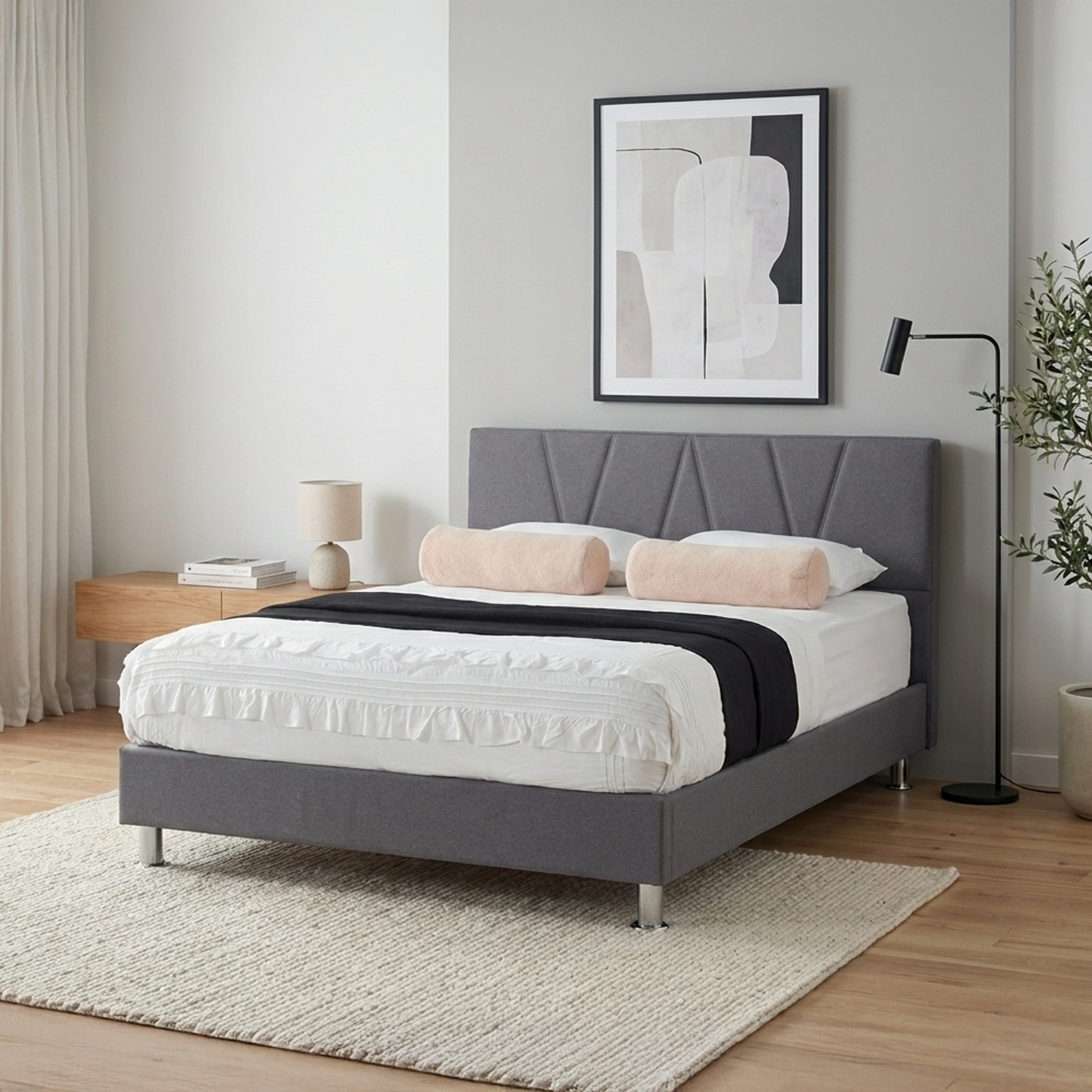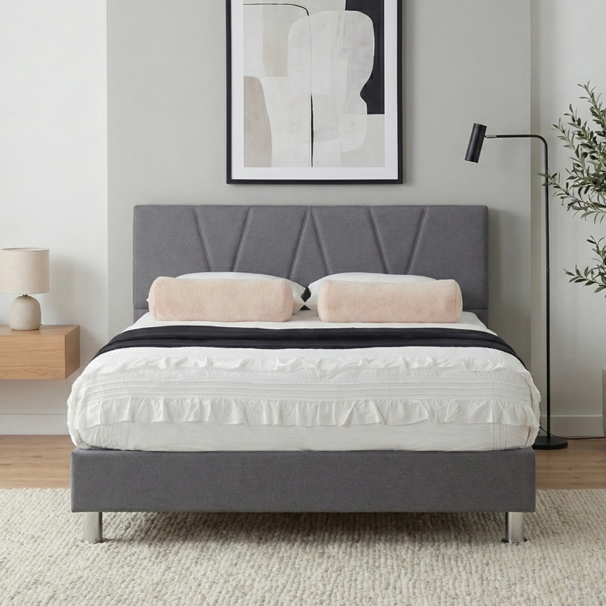 בסיס המיטה עם רגלי ניקל לבחירה, גישה נוחה לשואב אבק רובוטי